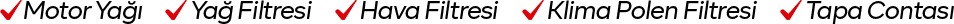 *Kampanya fiyatları belirtilen tarih aralıklarında yapılacak olan motor yağı ,yağ filtresi , hava filtresi, polen filtresi, tapa contası ve işçilikleri kapsamaktadır.